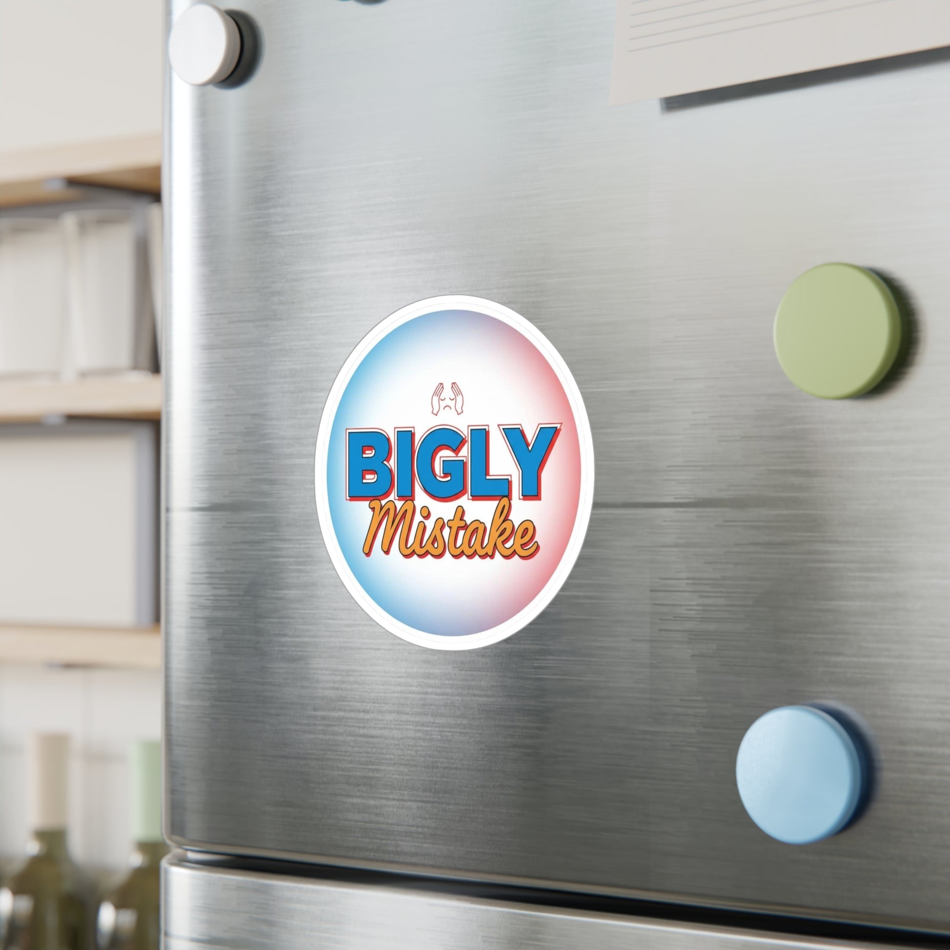 Funny Kiss-Cut Vinyl Decals for Laptop & Home Decor, Bigly Mistake Sticker, Gift for Friends, Humor Decor, Quirky Office