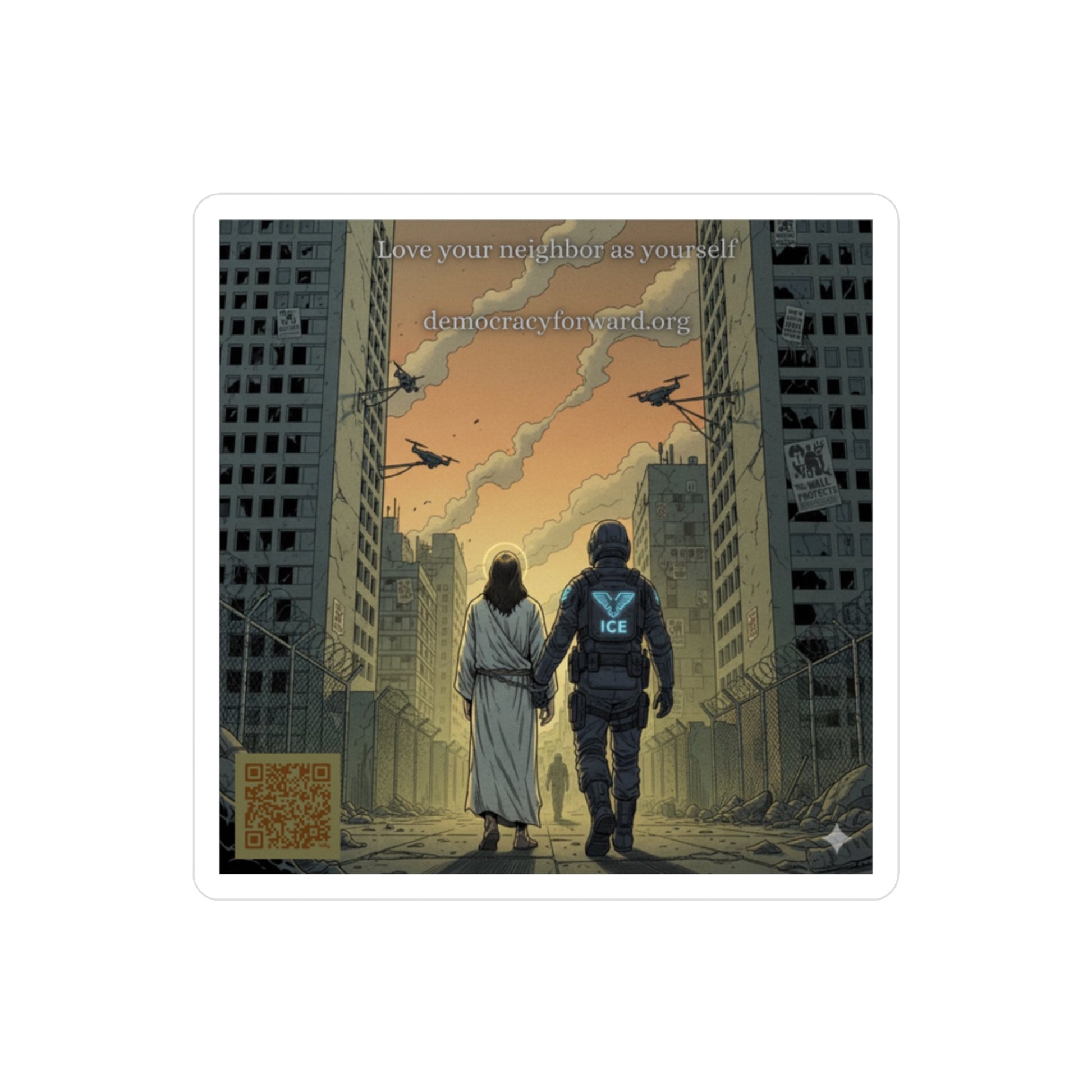 These Love your neighbor as yourself decals are perfect for those who want to protest inhumane treatment of immigrants. They give off a strong message and are ideal for sticking on laptops, water bottles, notebooks, or car windows. Relevant for activists, social justice advocates, and those passionate about human rights. Perfect for protests, rallies, social justice events, and everyday use.