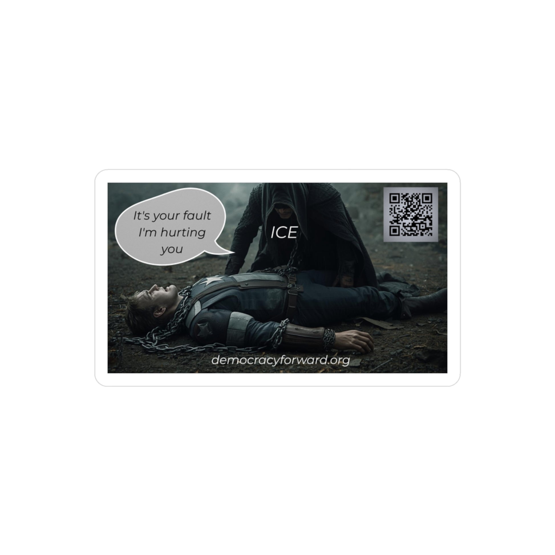 Symbolic ICE detaining Capt America sticker representing the attack on core American values. This vibrant and water-resistant decal is perfect for those who support freedom and justice. Ideal for political activists, protestors, and those passionate about social justice. Relevant for Fourth of July, Independence Day, and political rallies.