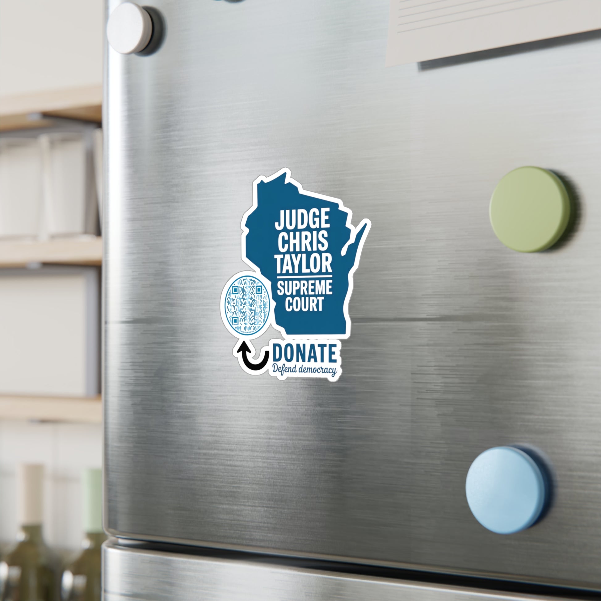 Show your support for Judge Chris Taylor from Wisconsin State supreme courts with these vibrant and high-quality kiss-cut vinyl decals. Perfect for those passionate about democracy, voting rights, and election integrity. Ideal for sticking on laptops, water bottles, and car windows. Relevant for political events, elections, and judicial activism.